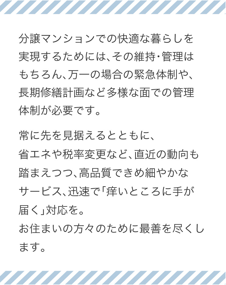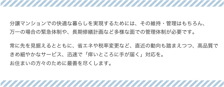 入居者・管理組合のパートナーとして健全な運営をお手伝い。